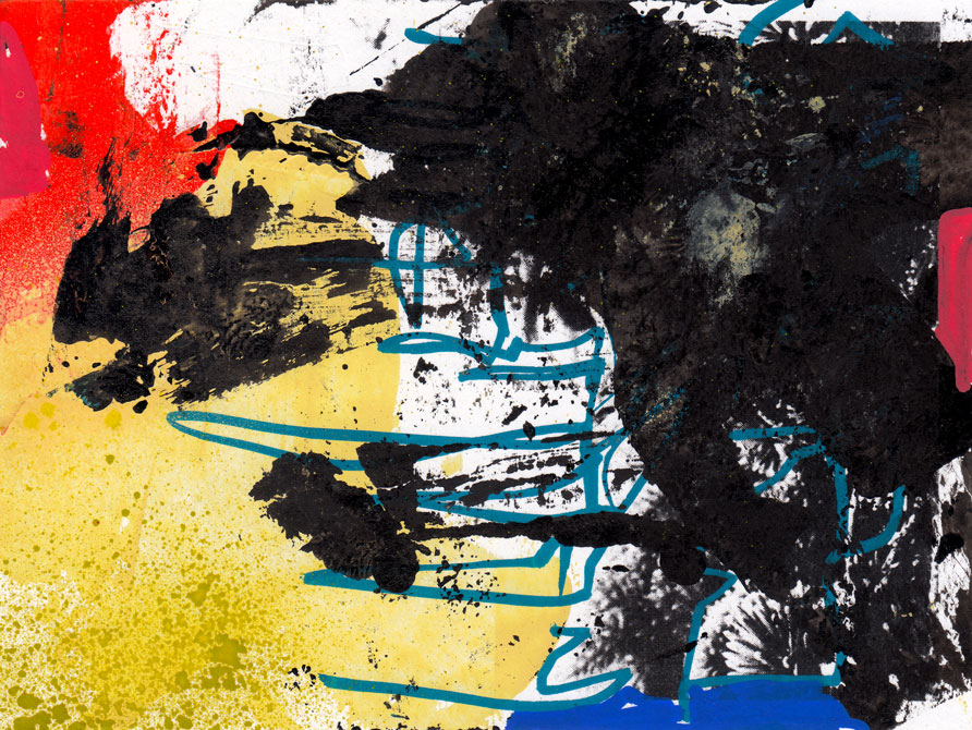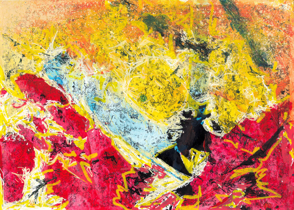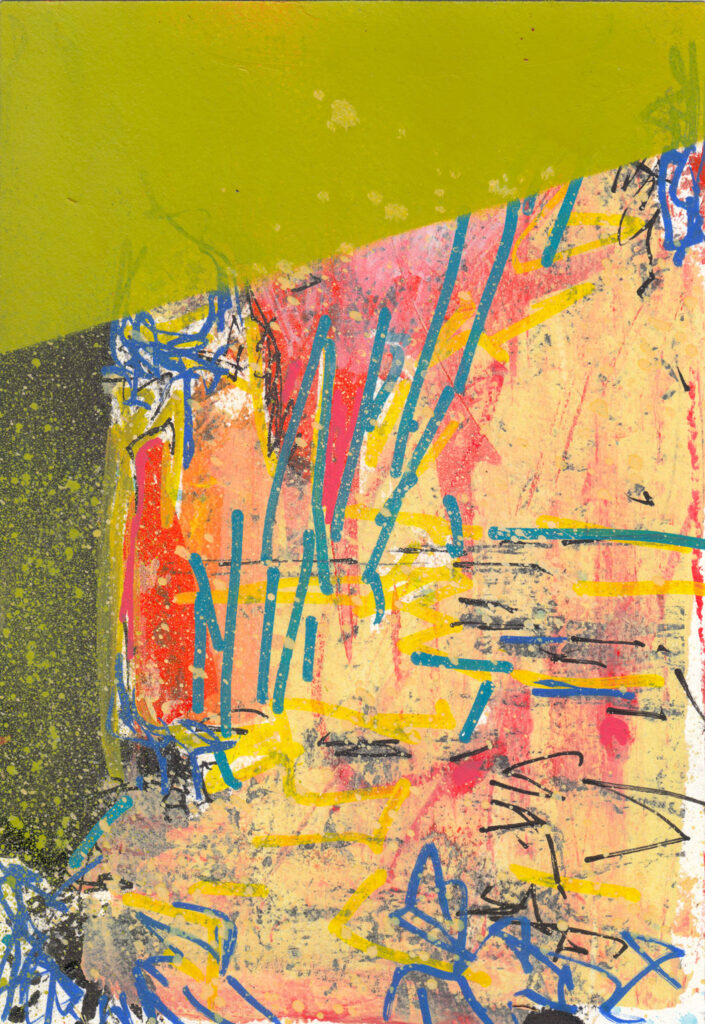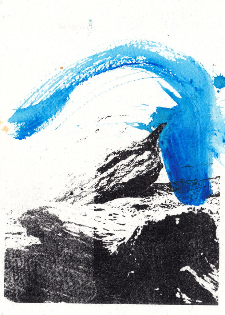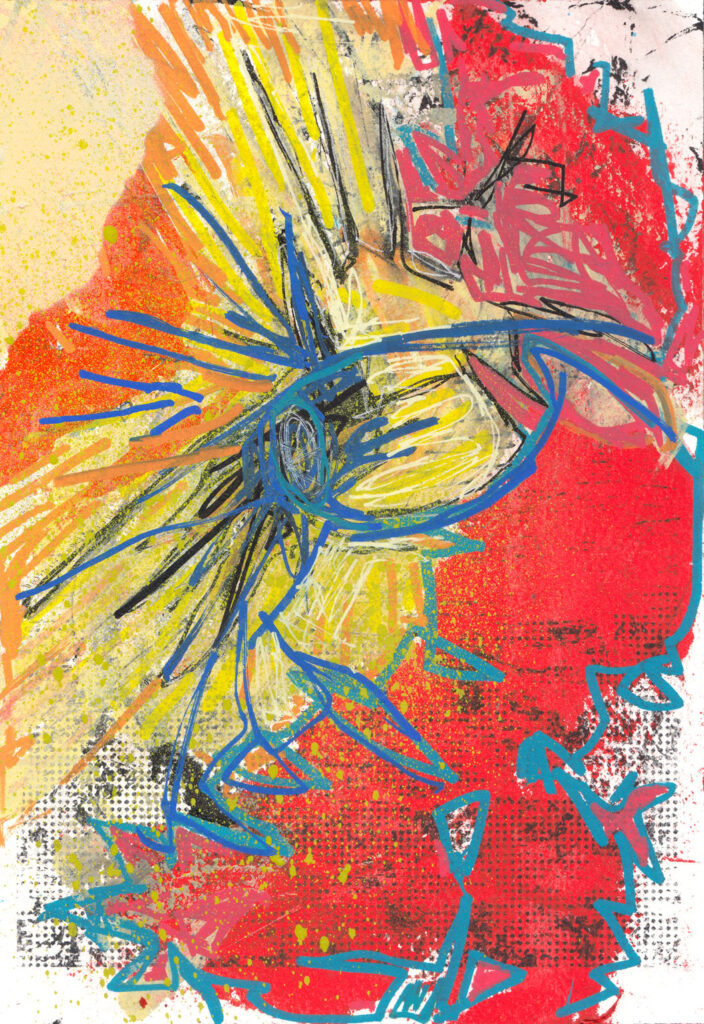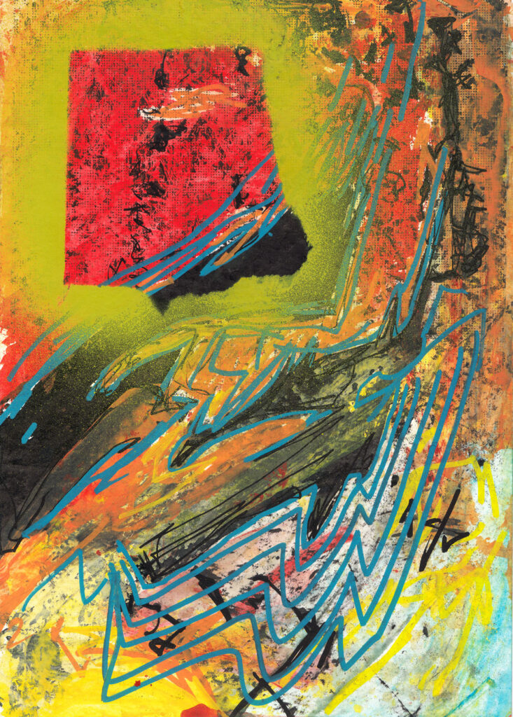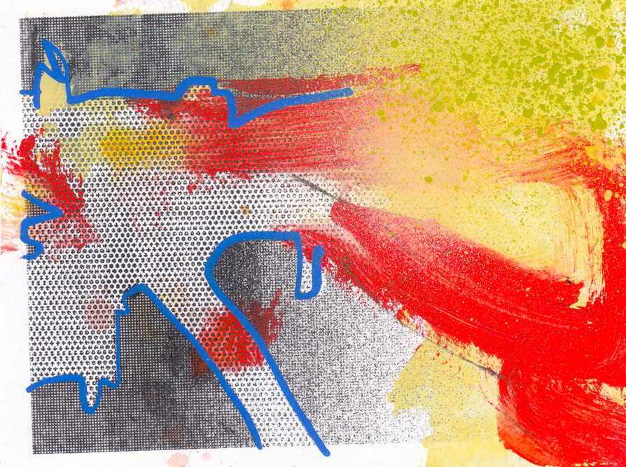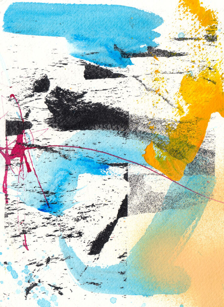 Cette série d’œuvres sur papier explore la rencontre entre deux forces : d’une part, la fixité des images imprimée en noir et blanc — qu’elles soient générées par intelligence artificielle ou photographiques — et d’autre part, la vitalité immédiate du geste pictural. En superposant encres, acrylique, fusain, pastel et traits spontanés au crayon sur ces images imprimées, j’ouvre un espace de friction entre mémoire et présence, entre surface et profondeur, entre figuration et abstraction. Chaque image devient un champ de tension : l’imprimé agit comme un cadre, un contexte, un passé reconstitué tandis que le geste pictural vient perturber, détourner ou révéler des zones de sens enfouies. Le noir et blanc de l’image imprimée évoque la distance, l’archive, la trace (accentuée par l’impression au laser qui rend visible le transfert numérique vers le support physique); le geste coloré, brut ou minimal, agit comme un contrepoint immédiat, intuitif, presque instinctif. Il redonne corps à l’image, lui insuffle un rythme, une présence humaine, imparfaite.