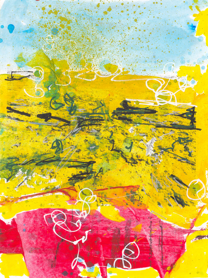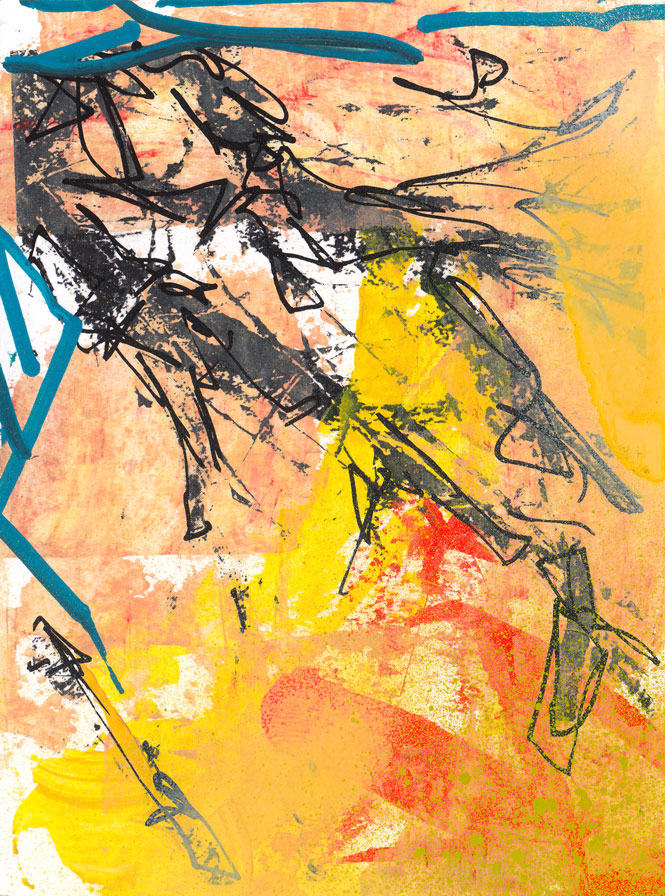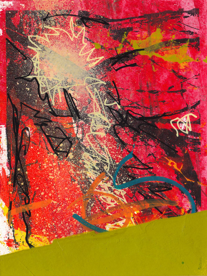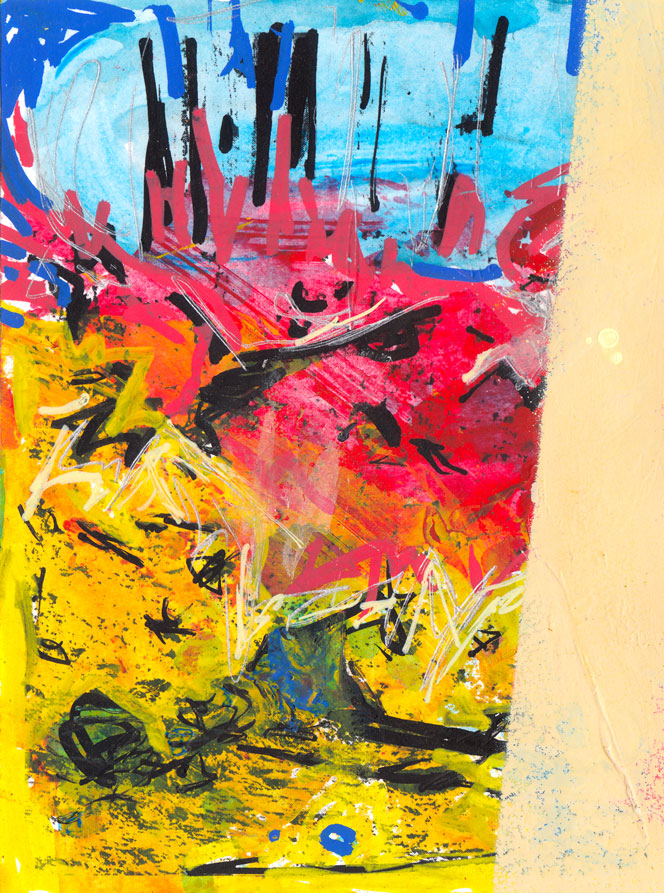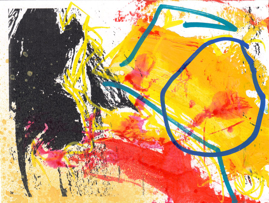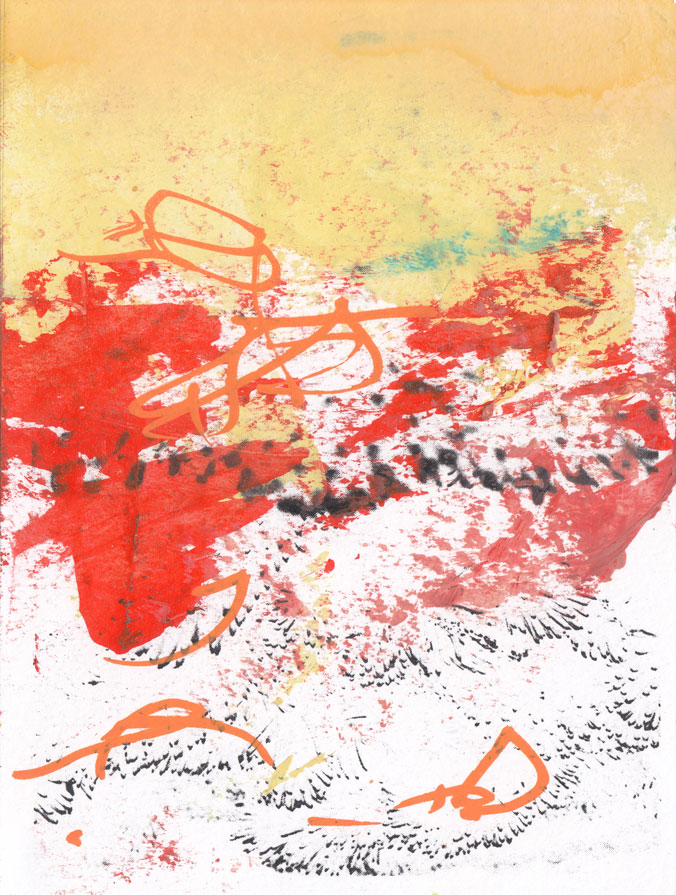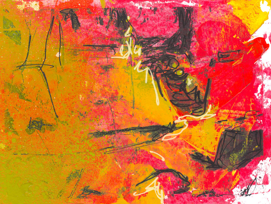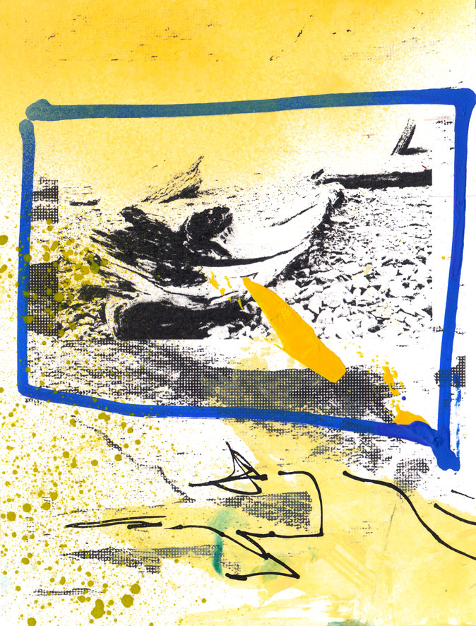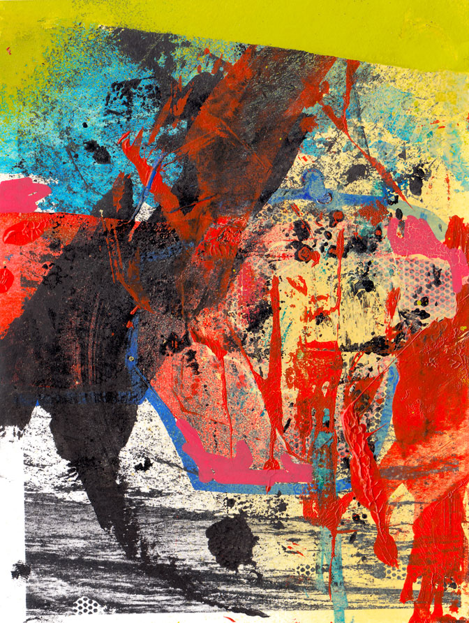 Cette série d’œuvres sur papier explore la rencontre entre deux forces : d’une part, la fixité des images imprimée en noir et blanc — qu’elles soient générées par intelligence artificielle ou photographiques — et d’autre part, la vitalité immédiate du geste pictural. En superposant encres, acrylique, fusain, pastel et traits spontanés au crayon sur ces images imprimées, j’ouvre un espace de friction entre mémoire et présence, entre surface et profondeur, entre figuration et abstraction. Chaque image devient un champ de tension : l’imprimé agit comme un cadre, un contexte, un passé reconstitué tandis que le geste pictural vient perturber, détourner ou révéler des zones de sens enfouies. Le noir et blanc de l’image imprimée évoque la distance, l’archive, la trace (accentuée par l’impression au laser qui rend visible le transfert numérique vers le support physique); le geste coloré, brut ou minimal, agit comme un contrepoint immédiat, intuitif, presque instinctif. Il redonne corps à l’image, lui insuffle un rythme, une présence humaine, imparfaite.